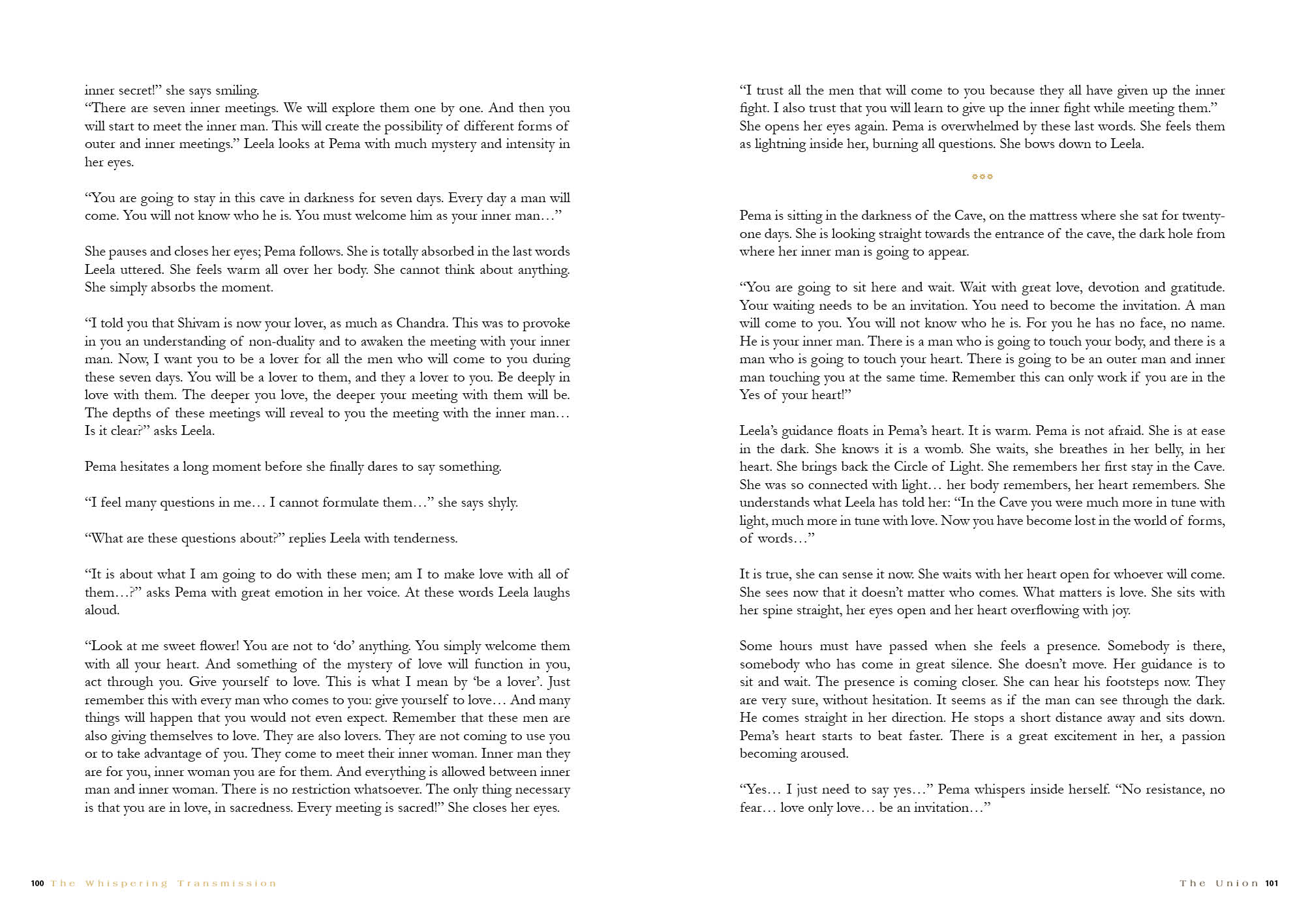 Pema Gitama, the author is investigating the depth of the mysterious Tantra Path by narrating the true story of a young Tibetan woman Pema, who, through various initiations, becomes disciple of the Indian Tantric Master: Leela. The story offers two perspectives of Tantra; the one from the Master and the one from the disciple, which makes the book very rich of wisdom, insight, break-through experiences, intense emotions, playfulness, sensuality. On the side of this spiritual adventure, there is a step by step guide into Tantric Meditation for individuals and couples to enable them to lift up their life energy to a blissful sexuality, to a fulfilling relating, and the highest level of consciousness and love.